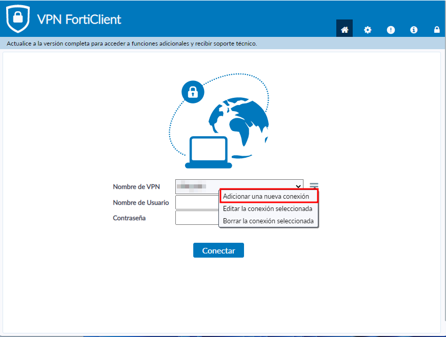 1. Instala la aplicación Forticlient VPN en tu equipo con sistema operativo Windows.