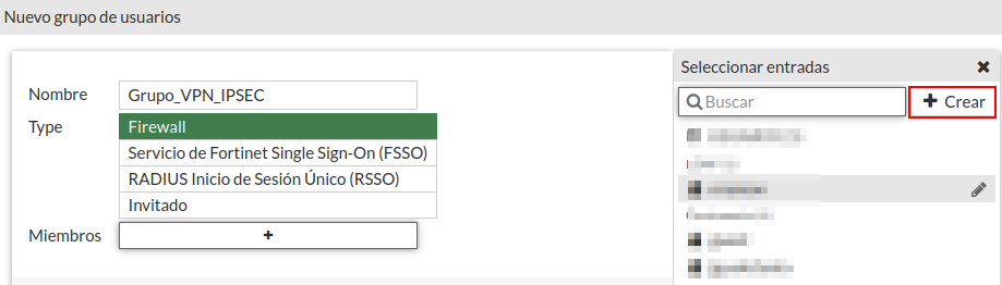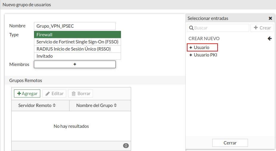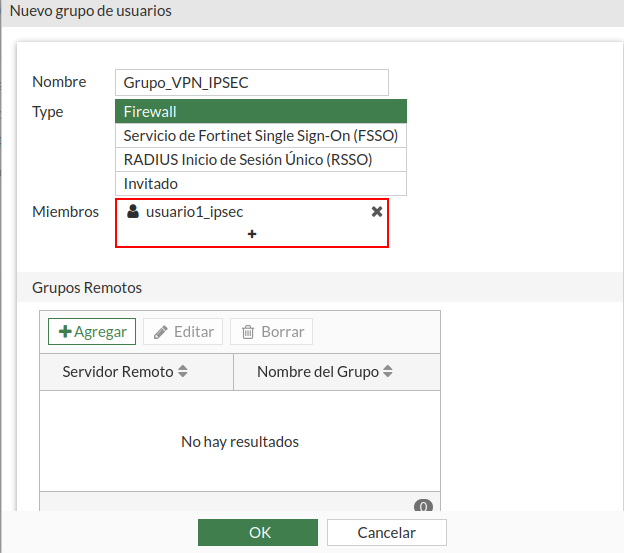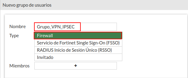 • Nombre del grupo de usuarios a crear. Por ejemplo: GRUPO_VPN_IPSEC