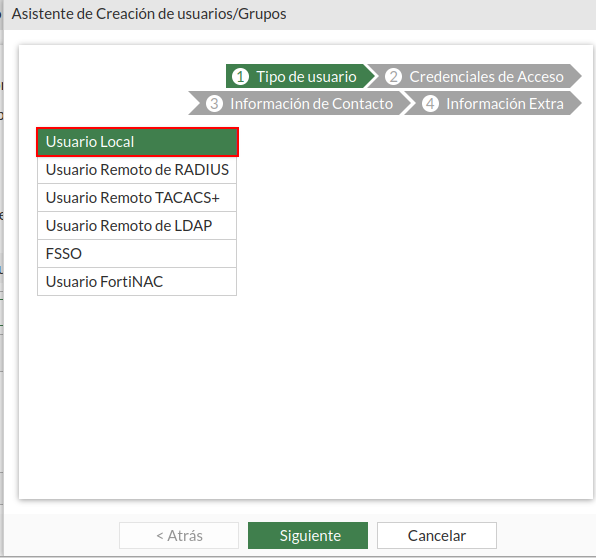 1. Seleccionado el Grupo de Usuarios, presionar clic en el botón Siguiente para continuar con la configuración.
