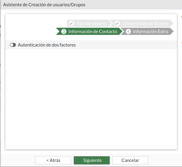 • Presiona el botón Siguiente para continuar con la creación del usuario.