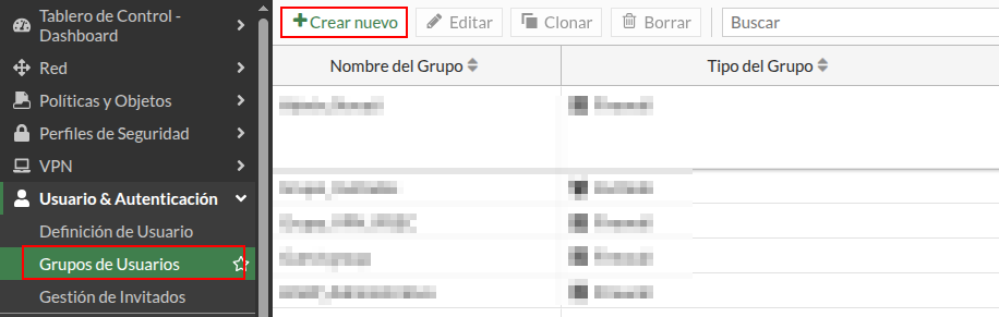 • En la sección tipo de grupo (Type) seleccionar la opción Firewall.