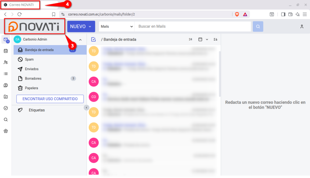 Luego, crea enlaces simbólicos para cada alias que apunte al dominio correspondiente, por ejemplo, si los usuarios acceden de la siguiente forma -> https://correo.novati.com.ec, crearemos el enlace para correo.novati.com.ec de la siguiente manera: